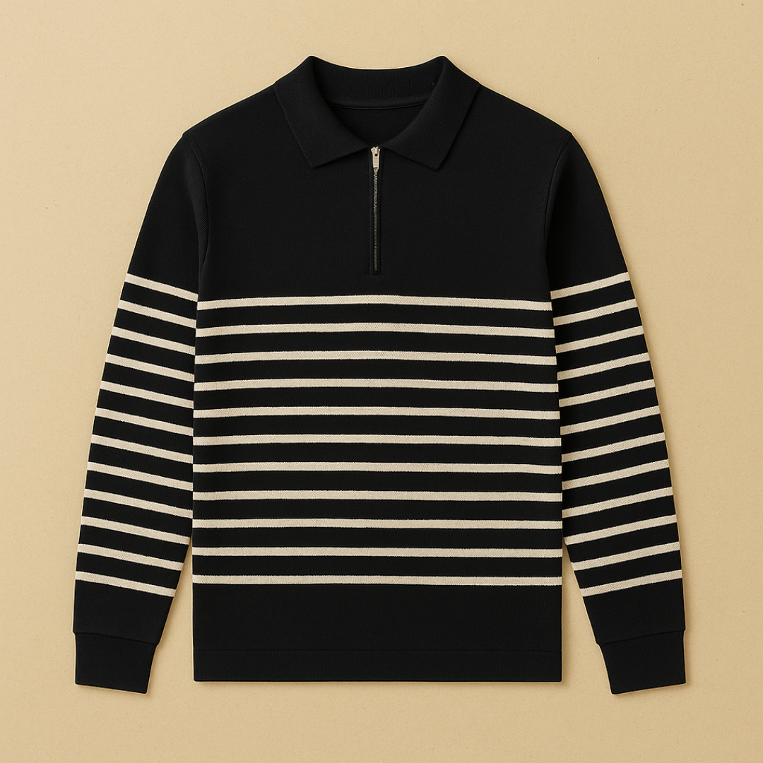 Maddox - Striped Half-Zip Knit Sweater